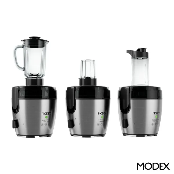 این مدل آبمیوه گیری چندکاره مودکس بهعنوان یک ابزار چهار کاره طراحی شده است که شامل آبمیوهگیری، مخلوطکن، خردکن و آسیاب میشود. این ویژگیها نیاز به خرید چندین دستگاه جداگانه را از بین میبرند و فضای آشپزخانه را بهینه میکنند: