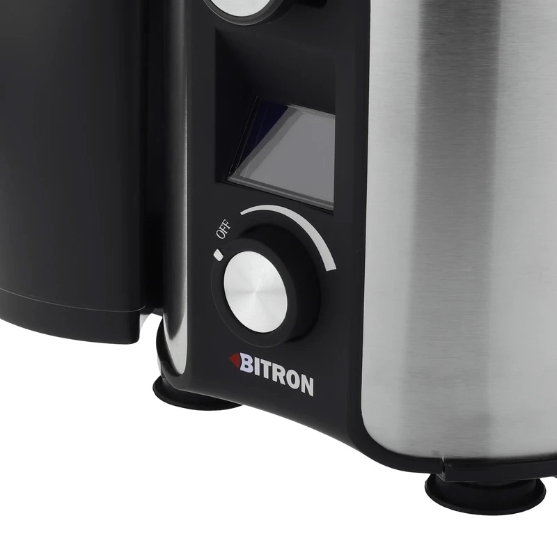 از ویژگیهای برجسته BAM-DX7 بایترون میتوان به نمایشگر LCD و درب داخلی برای ایمنی بیشتر اشاره کرد. نمایشگر اطلاعات مربوط به سرعت و وضعیت کارکرد دستگاه را به شما نمایش میدهد و درب داخلی باعث جلوگیری از هرگونه آسیب یا پاشش میوه به بیرون میشود.