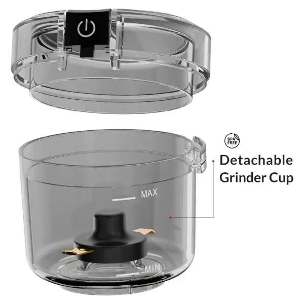 همچنین برای ایمنی بیشتر زمانی روشن میشود که درپوش محکم سرجایش قرار گرفته و دکمه فشار داده شود. این موضوع هم ایمنی بالایی ایجاد میکند و هم کنترل شما روی میزان آسیاب را بیشتر میکند.