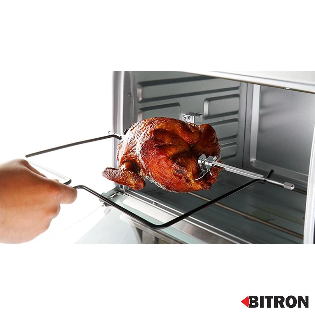 برای عاشقان مرغ بریان و غذاهای تنوری، وجود سیستم جوجهگردان در بایترون TO-285 یکی از بهترین مزیتهاست. این سیستم با چرخش مداوم مرغ یا گوشت روی سیخ مخصوص، باعث پخت یکنواخت و برشته شدن تمام قسمتهای آن میشود.