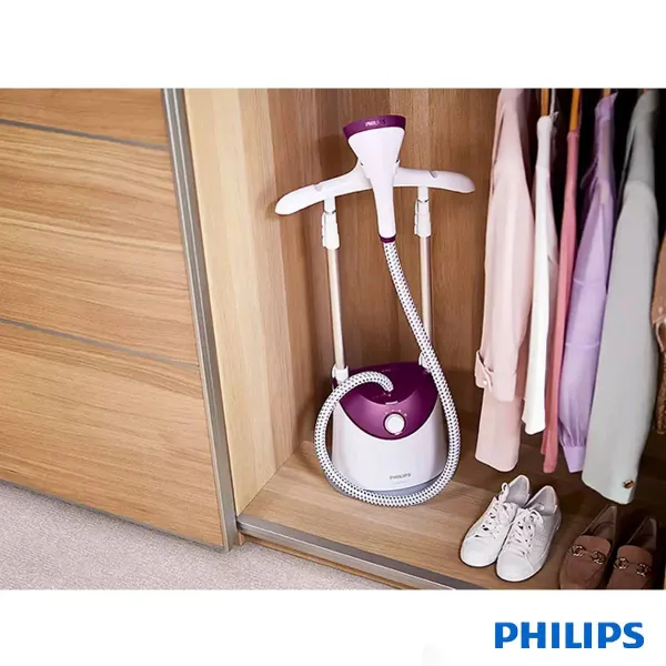 ویژگی ایستادگیِ اتوی GC486 فیلیپس یعنی دستگاه به صورت عمودی و ایستاده طراحی شده تا بدون نیاز به میز اتو یا سطح صاف، بتونی لباسها رو روی چوبلباسی و پرده اتو کنی. این یعنی هیچوقت مجبور نیستی برای اتو کردن لباسهای آویخته کار اضافی بکشی، مخصوصاً برای پارچههای بلند یا پرده.