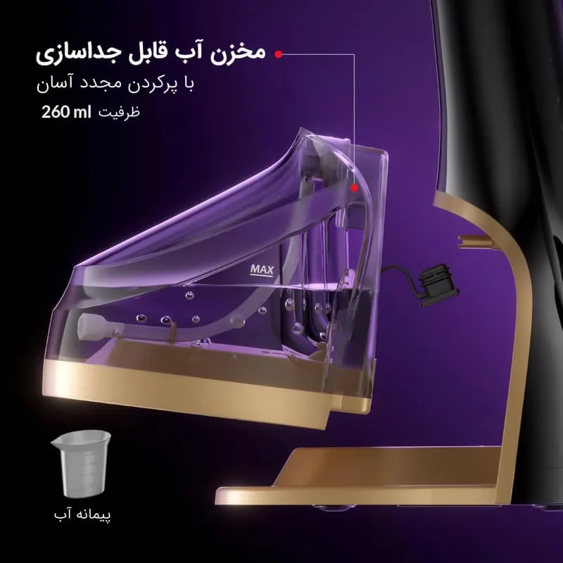 | امکانات | خاموش شدن خودکار, بخار دهی افقی و عمودی, مخزن آب شفاف با قابلیت جدا شدن, قابلیت جداشدن مخزن آب, سیستم ضد چکه, طراحی ارگونومیک |