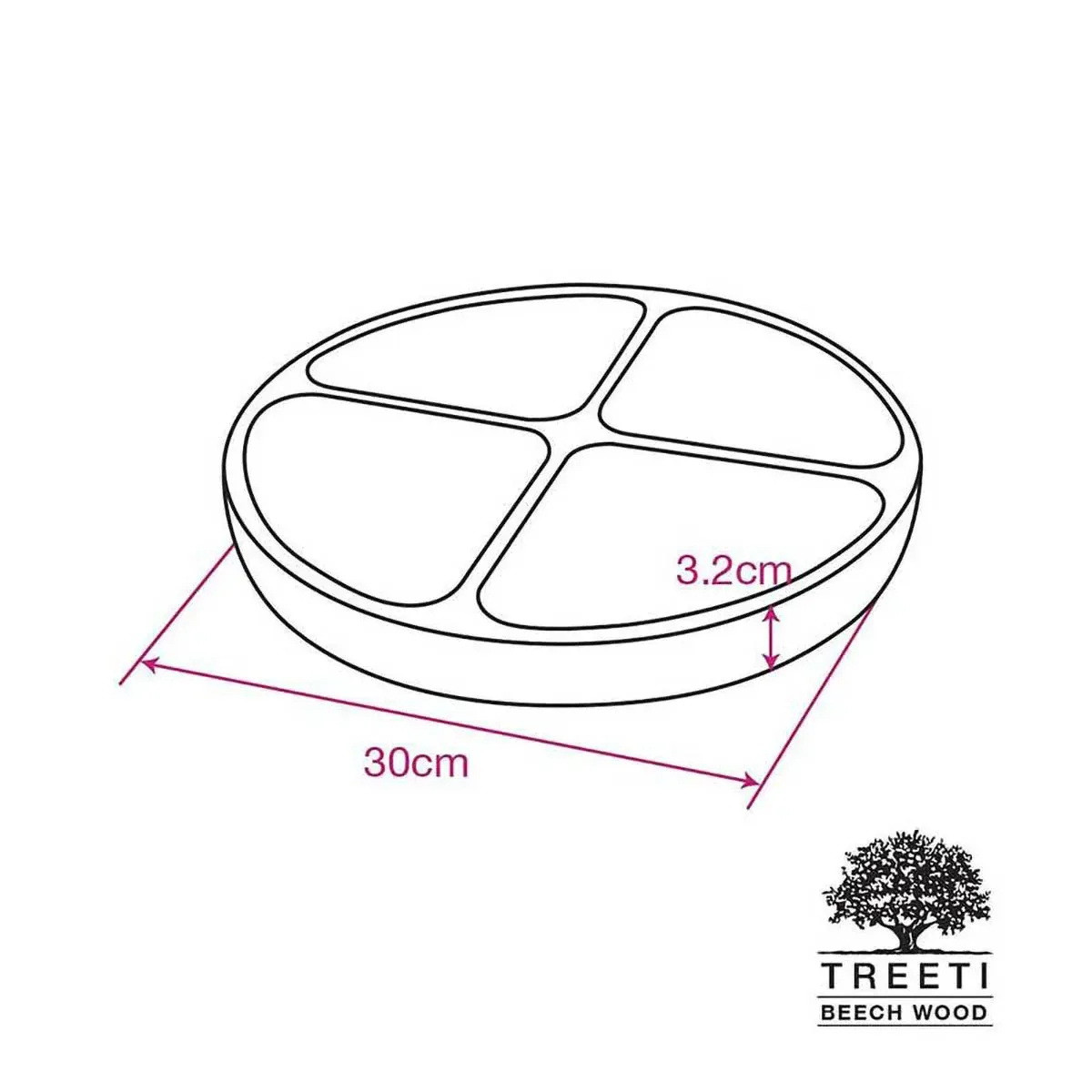 اردورخوری چوبی گرد چهار خانه تیریتی 30 سانتی B2124