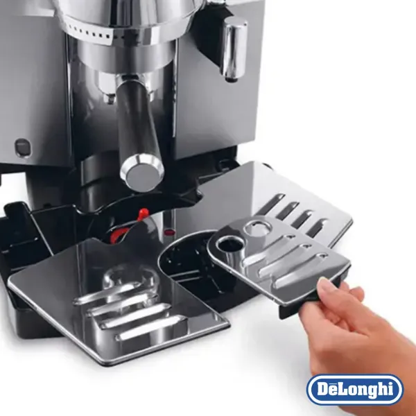 نحوه استفاده از اسپرسوساز دلونگی EC685 برای همه افراد بسیار ساده و راحت طراحی شده است. برای کار با این دستگاه ابتدا مطمئن شوید دستگاه روی سطحی صاف و پایدار قرار دارد و مخزن با آب تازه پر شده است. سپس پودر قهوه را در پرتافیلتر بریزید و با فشار کفگیر مخصوص سطح آن را صاف کنید. پرتافیلتر را در محل مخصوص قرار داده و محکم کنید.