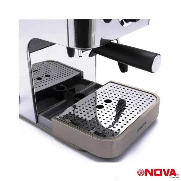 بدنه اسپرسو ساز نوا 149 از استیل ضد زنگ ساخته شده که دوام بالا و ظاهری شیکی را به همراه دارد. سینی چکهگیر قابل جداسازی، تمیزکاری دستگاه را آسان کرده و تمپر فلزی قهوه، حس حرفهای بودن تهیه قهوه غلیظ را تقویت میکند. طراحی جمعوجور دستگاه باعث میشود فضای زیادی در آشپزخانه اشغال نکند و با دکورهای مدرن و کلاسیک به راحتی هماهنگ باشد.