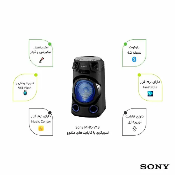 اسپیکر بلوتوثی سونی MHC-V13 ، دقیقا همان چیزی است که مطمئن هستیم که به دنبالش میگردید. این اسپیکر مشخصاتی دارد که آن را به یکی از محبوبترین اسپیکرهای بازار تبدیل کرده است. بریم که بیشتر بشناسیمش!