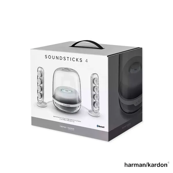 هارمن کاردن در طراحی SoundSticks 4 اصول زیباییشناختی را در قالب ساخت درجه یک به کار گرفته است. انتخاب پلی کربنات شفاف به عنوان متریال اصلی بدنه و فرمهای منحنی، ظاهر مدرن و جدید به دستگاه داده است.