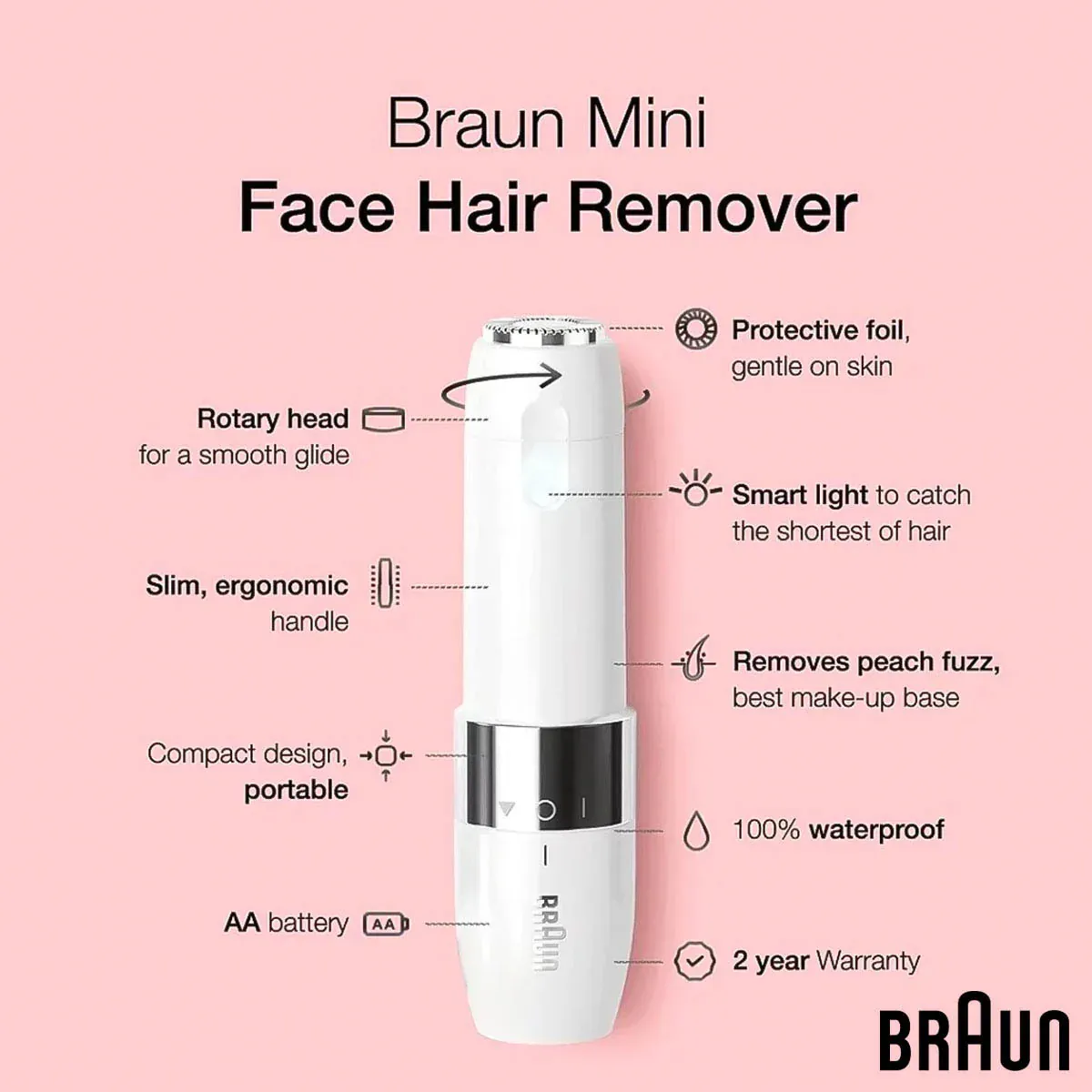 طراحی بدنه این اپیلاتور به گونهای است که به راحتی در کیف لوازم آرایش کوچک شما جا میگیرد. وزن بسیار کم و فرم استوانهای آن باعث میشود هنگام استفاده، دست شما خسته نشود و تسلط کاملی روی زوایای صورت (مانند چانه و بالای لب) داشته باشید. این دستگاه با یک باتری قلمی معمولی مدتها برای شما کار میکند که نشاندهنده بهینه بودن موتور آن است.