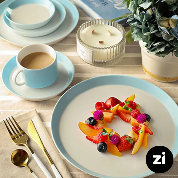 بشقاب تخت چینی زرین Zi فرم اس پاستل آبی سایز 18