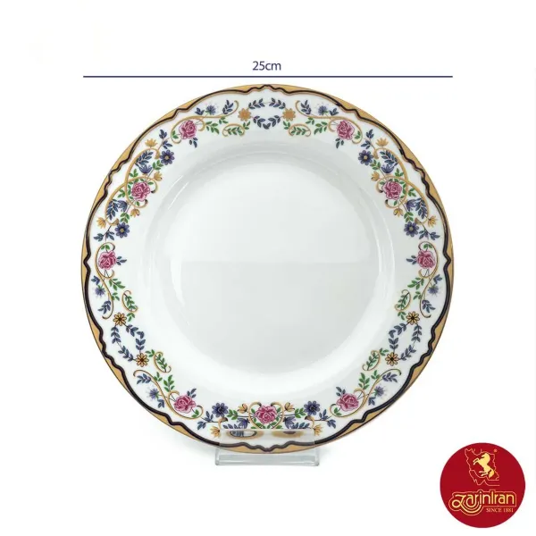 بشقاب تخت چینی زرین ایتالیا اف طرح گلستان سایز 25