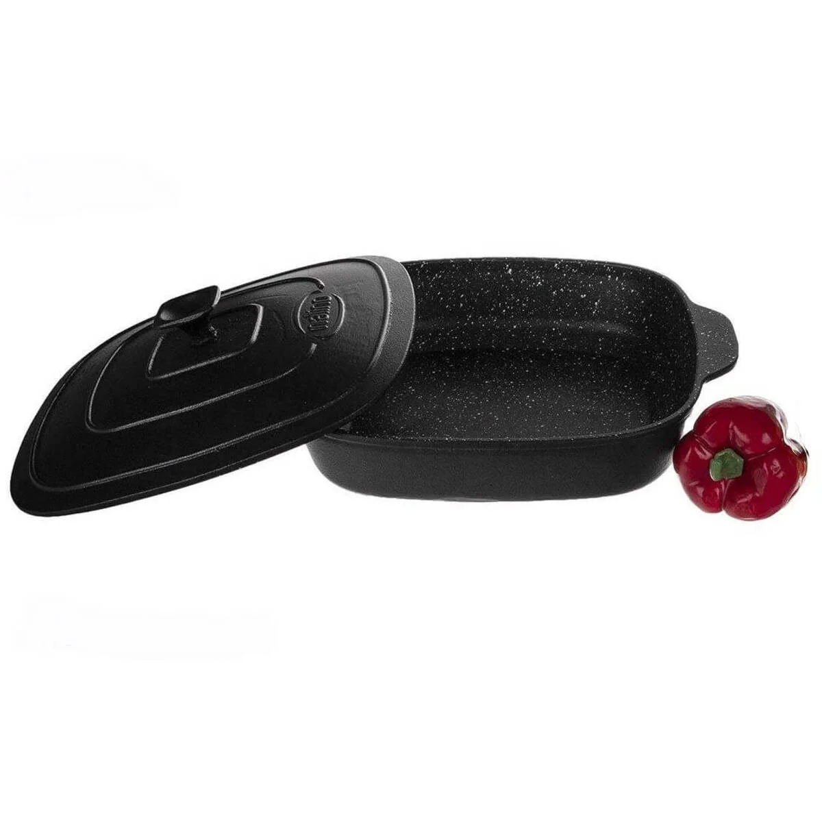 تابه با اضلاع 28 سانتیمتری و عمق ۷ سانتیمتری فضای کافی برای پخت یک مرغ کامل یا ماهی و... را فراهم میکند.