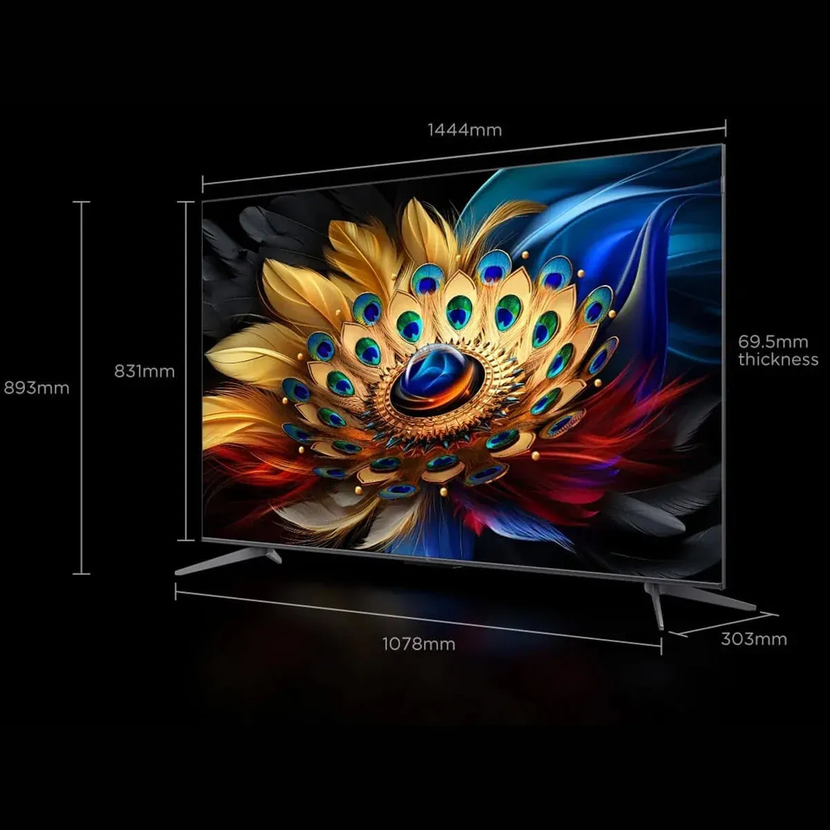 | ابعاد و وزن | - ابعاد با پایه: 1451 × 907 × 300 میلیمتر - ابعاد بدون پایه: 1451 × 835 × 65 میلیمتر - وزن با پایه: 24.5 کیلوگرم - وزن بدون پایه: 22.5 کیلوگرم |