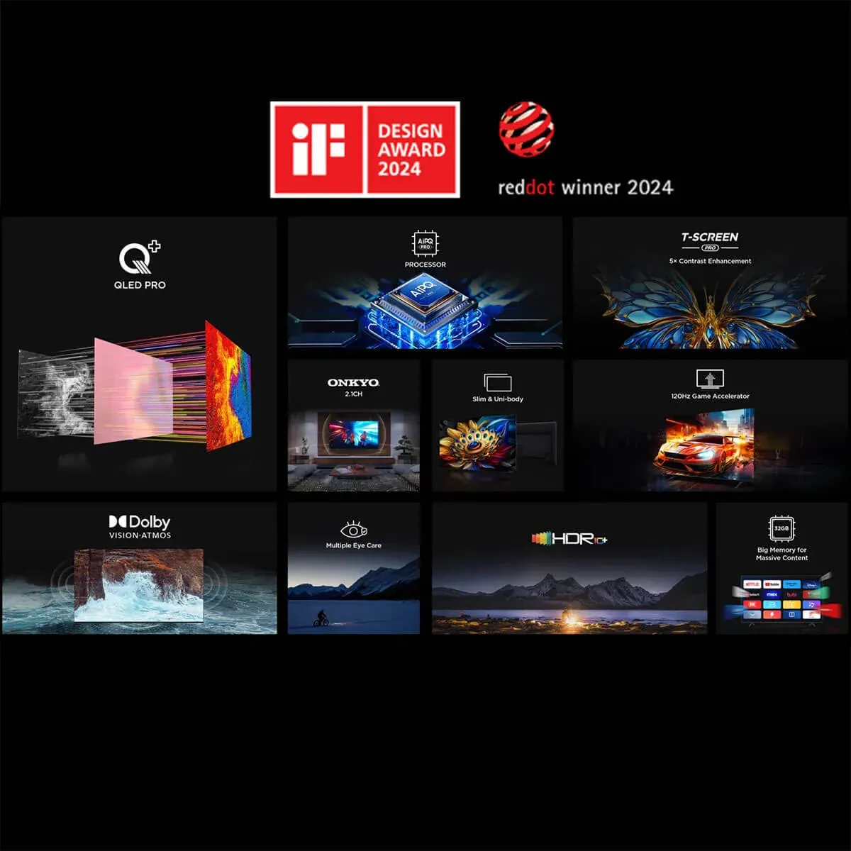 این تلویزیون 65 اینچ در سال 2024 موفق به دریافت جایزه طراحی Red Dot شده است. فریم باریک و استایل مینیمال آن بهراحتی با دکوراسیون مدرن هماهنگ میشود و صفحه بزرگ 65 اینچیاش حس یک سینمای خانگی واقعی را به خانه میآورد.