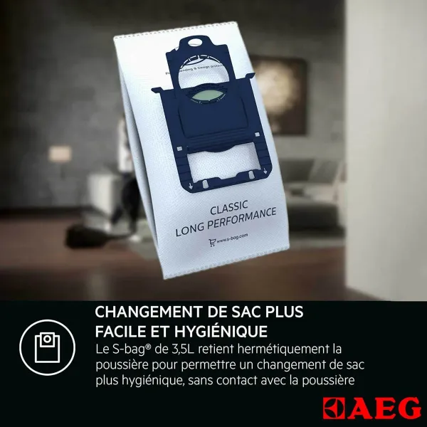 این مدل از کیسههای S-Bag استفاده میکند که ظرفیت بالای ۳.۵ لیتر دارند. این ویژگی باعث میشود تا نیاز به تعویض مکرر کیسه کاهش یابد و کاربر بتواند مدتزمان بیشتری از دستگاه استفاده کند.