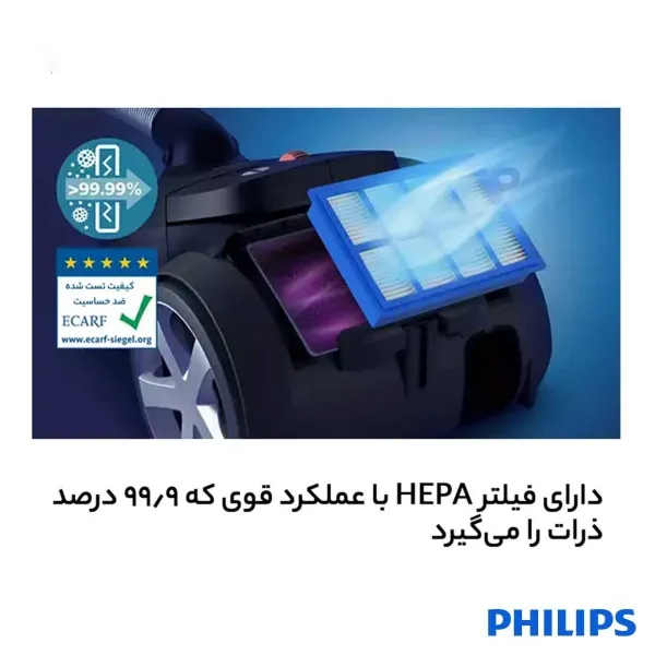 اگر در خانه کودک خردسال دارید یا کسی از اعضای خانواده به گرد و غبار حساس است، فیلتر دستگاه اهمیت زیادی پیدا میکند. در این بخش، فیلیپس سنگ تمام گذاشته است.