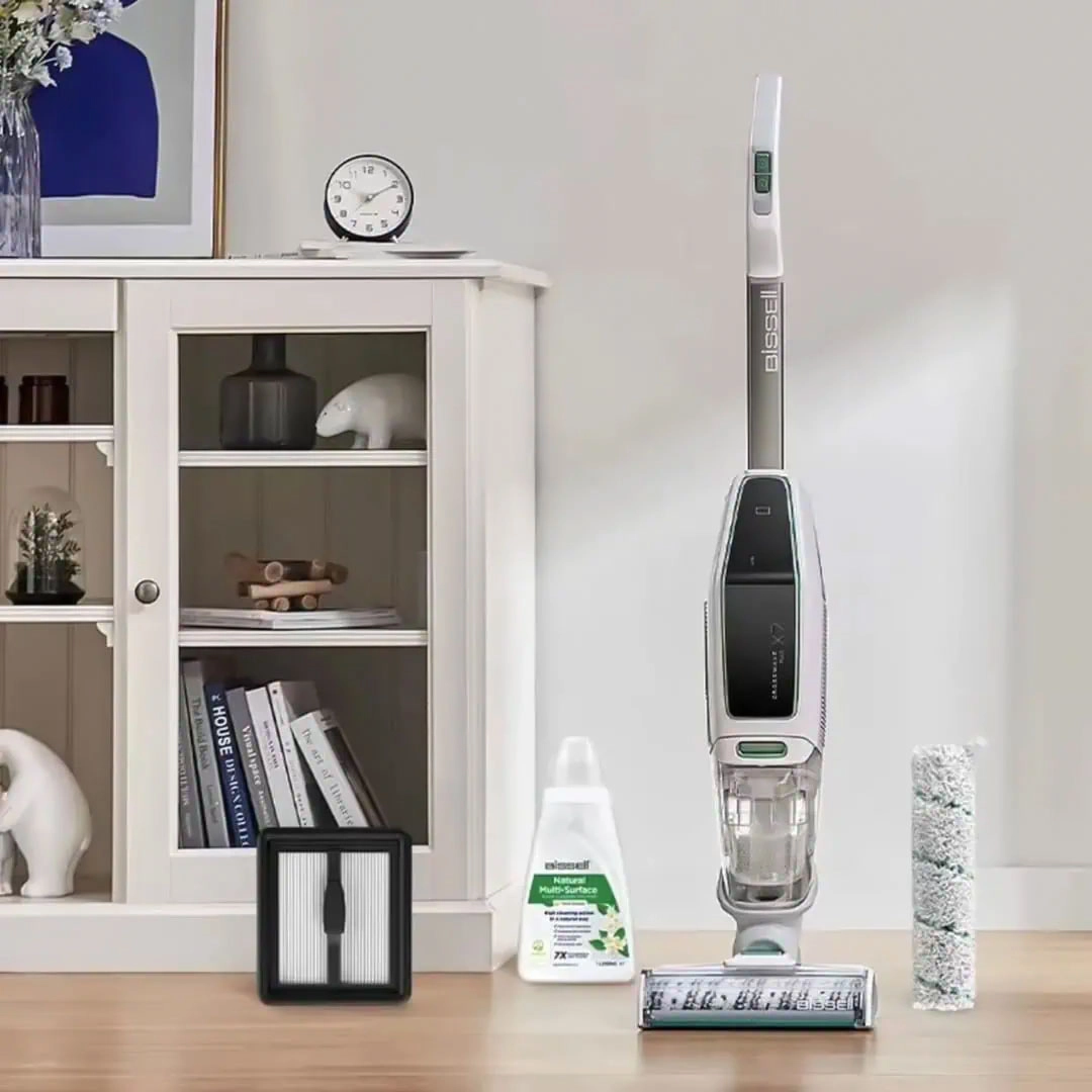 این مدل جارو شارژی ایستاده نه تنها گرد و غبار را جمعآوری میکند، بلکه با سیستم شستشوی همزمان، سطوح سخت را ضدعفونی و براق میکند. تصور کنید که بدون نیاز به تعویض ابزار، آشپزخانه، اتاق نشیمن و حتی راهروها را در یک نوبت به راحتی تمیز کنید.