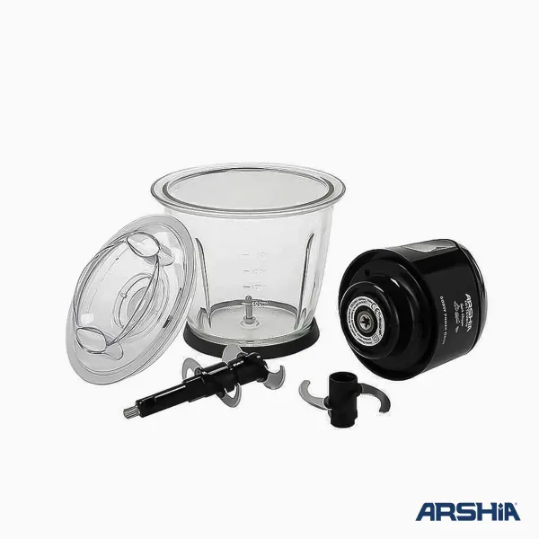 بدنه خردکن عرشیا از مواد پلاستیکی مرغوب و مقاوم ساخته شده است که علاوه بر سبکی، دوام بالایی دارد. ترکیب بدنه پلاستیکی با پایههای سیلیکونی و ظرف پیرکس، مجموعهای هماهنگ و باکیفیت را تشکیل داده است. طراحی ارگونومیک دستگاه نیز باعث میشود استفاده طولانی مدت از آن خسته کننده نباشد.