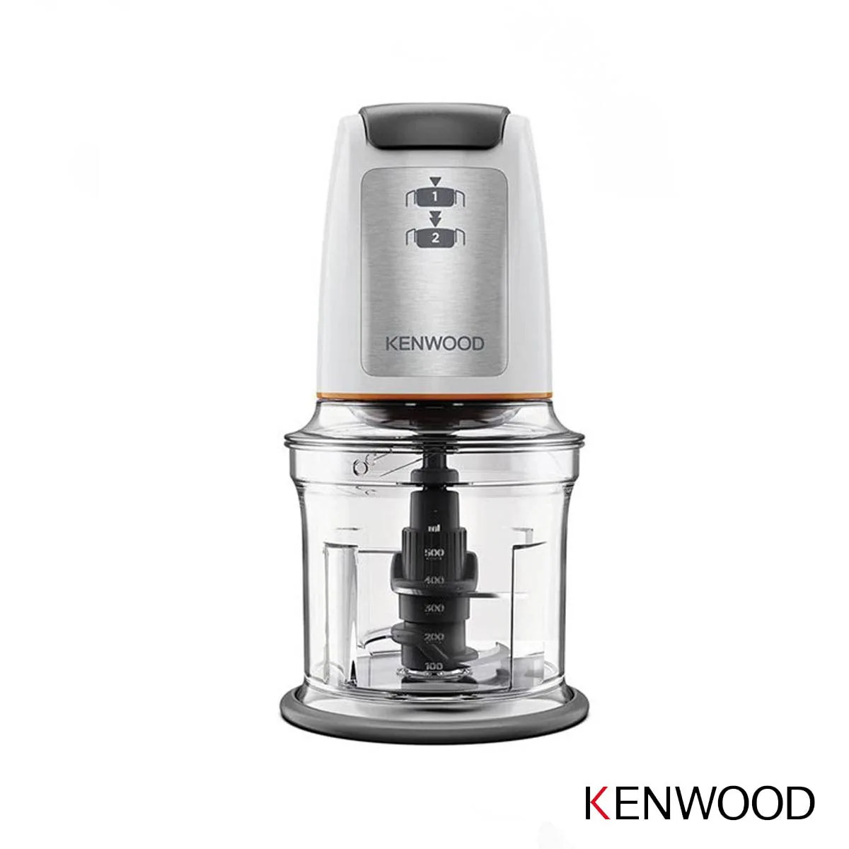 دکمه روشن و خاموش خردکن کنوود 500 وات مدل CHP61 روی درب بالایی قرار دارد. برای شروع عملکرد خردکن، کافی است دکمه را فشار داده و نگه دارید. با برداشتن دست از روی دکمه، دستگاه خاموش میشود. این خردکن دارای قفل ایمنی است و اگر درب مخزن به درستی قرار نگیرد و یا دستگاه به خوبی جایگیری نشود، موتور روشن نمیشود. در نتیجه شما میتوانید با خیال راحت و بدون نگرانی از این دستگاه استفاده کنید.