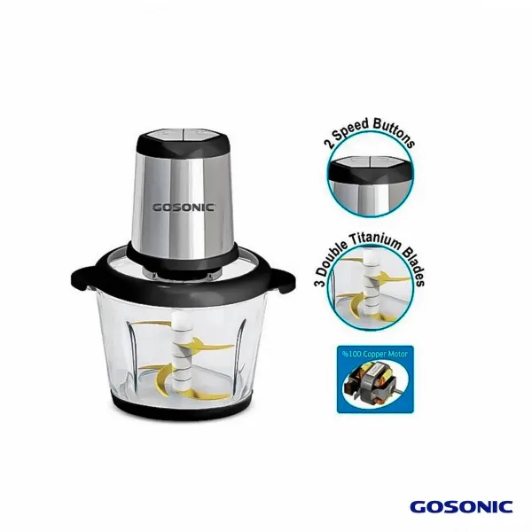 خردکن برقی گوسونیک 6 تیغه 3.3 لیتری GSC-603 یک دستگاه پرقدرت با موتور توانمند و تیغههای استیل ضدزنگه که مواد غذایی رو سریع، یکنواخت و بدون زحمت خرد میکنه. ظرفیت بالای ۳.۳ لیتری اون باعث میشه حجم زیادی گوشت، سبزی یا پیاز رو یکجا آماده کنید، بدون نیاز به چند بار تکرار.