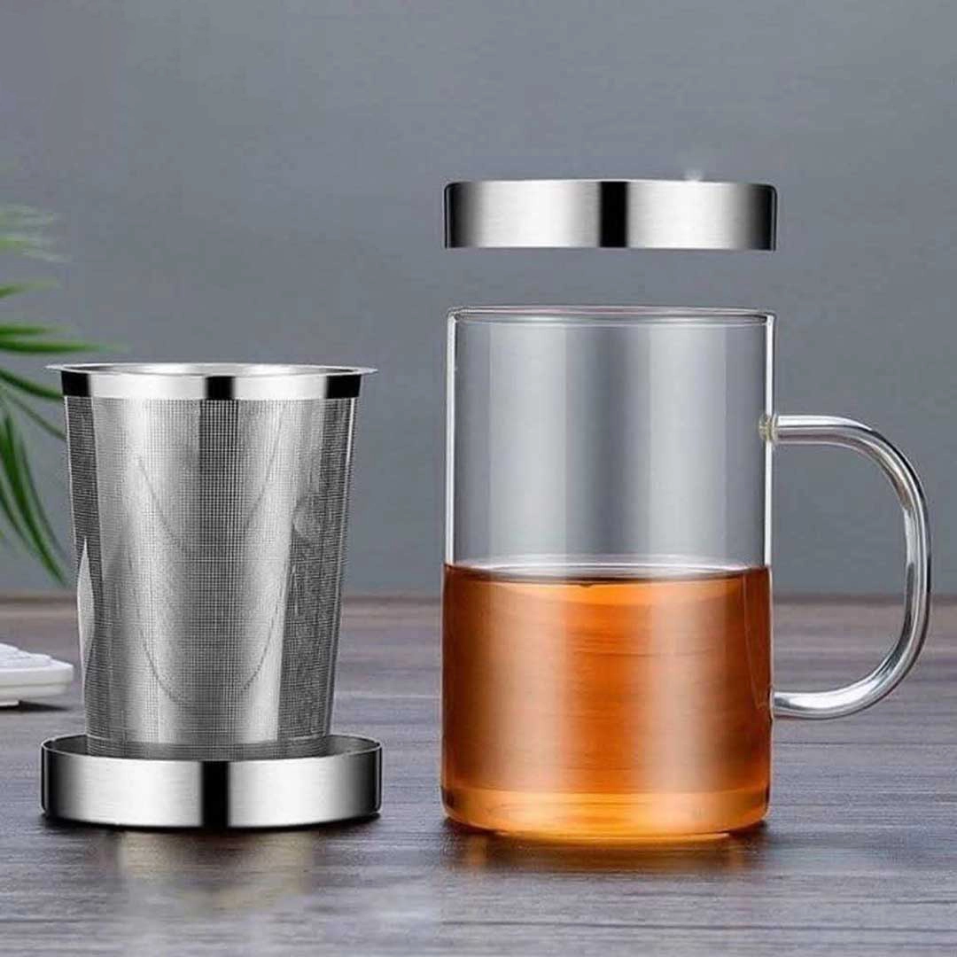 لیوان دمنوش پیرکس با تفاله گیر استیل 500 میلی لیتر وارداتی