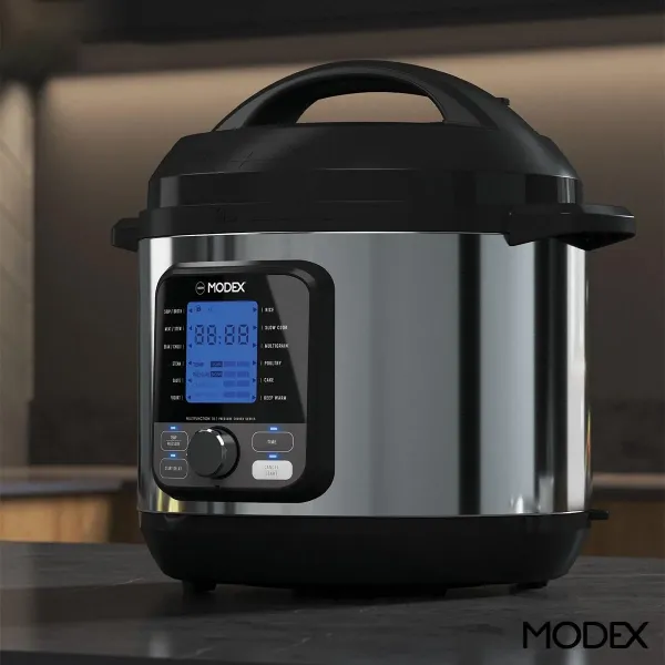 برای این مدل از برند مودکس با ۱۵ برنامه پخت پیشفرض از جمله برنامههایی مثل پخت گوشت، حبوبات، برنج، خورشت، کیک، بخارپزکردن و... در نظر گرفته شده است. بنابراین، هر غذایی که بخواهید آماده کنید میتوانید از این زودپز کمک بگیرید و با زمان و فشار متناسب آن را بپزید.