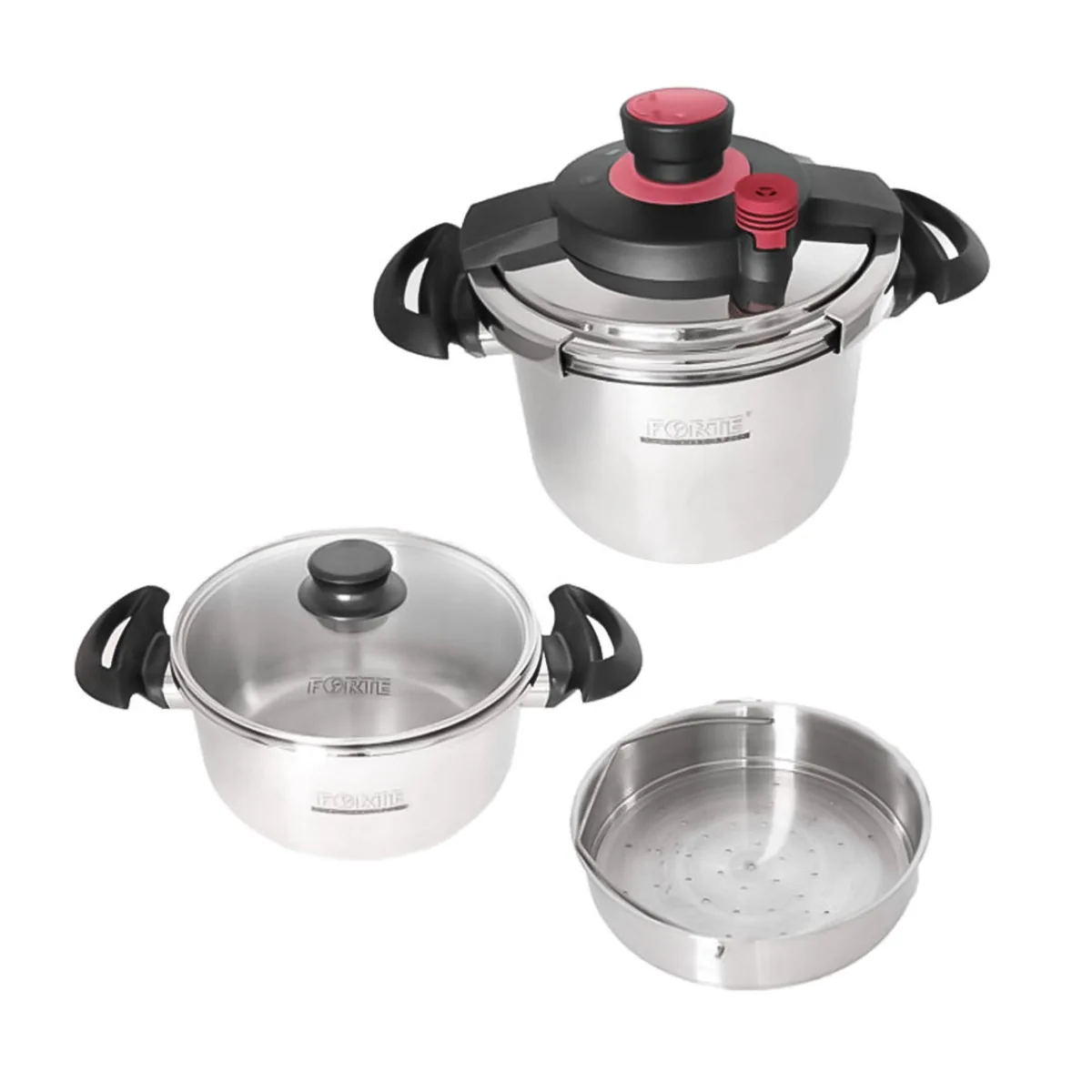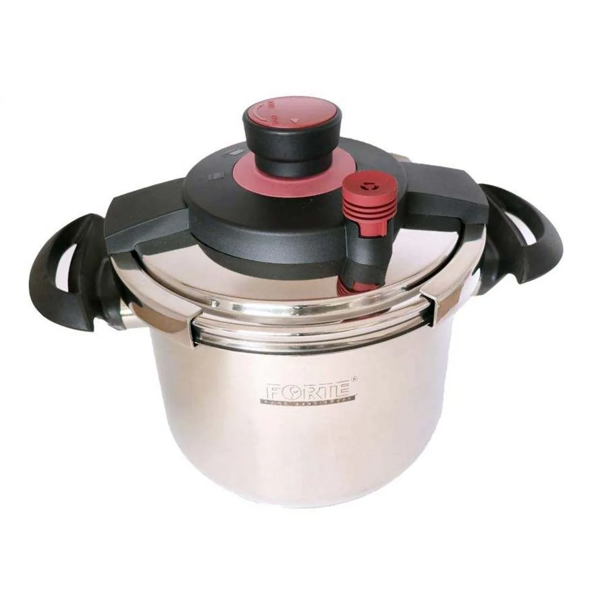 زود پز فورته تمام استیل فورته مناسب برای پخت سریع و با کیفیت مواد غذایی می باشد. بدنه و درب دیگ از جنس استنس استیل بوده که بهترین کیفیت فلز برای پخت مواد غذایی می باشد. همچنین با پرداخت کاری های صورت گرفته روی دیگ، علاوه بر استحکام بسیار زیاد در برابر ضربه و فشار، دارای طول عمر بالا و مقاوم در برابر زنگ زدگی می باشد. همچنین این زود پز ضمن درخشندگی و جذابیت از چسبندگی مواد غذایی جلوگیری نموده و به راحتی قابل شست و شو می باشد. واشر سیلیکون به علت مقاوم بودن در برابر حرارت دارای طول عمر زیاد بوده و مطابق استاندارد عمل می نماید. کف دیگ به علت سه لایه بودن و ضخامت خاص به گونه ای طراحی شده که ضمن جذب حرارت به طور کامل باعث پخش حرارت به طور یکنواخت در داخل دیگ می گردد.