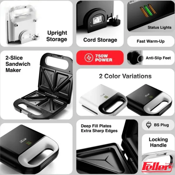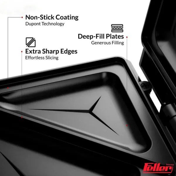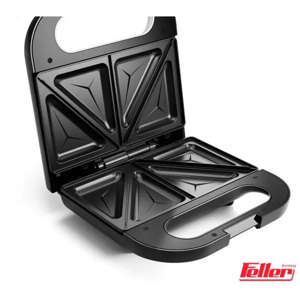 این مدل ساندویچ ساز فلر امکان تهیه 4 ساندویچ مثلثی بهصورت همزمان را دارد که برای خانوادههای کوچک تا متوسط کافیست. طراحی صفحات دستگاه بهگونهای است که ساندویچها بهصورت یکنواخت برشته میشوند.