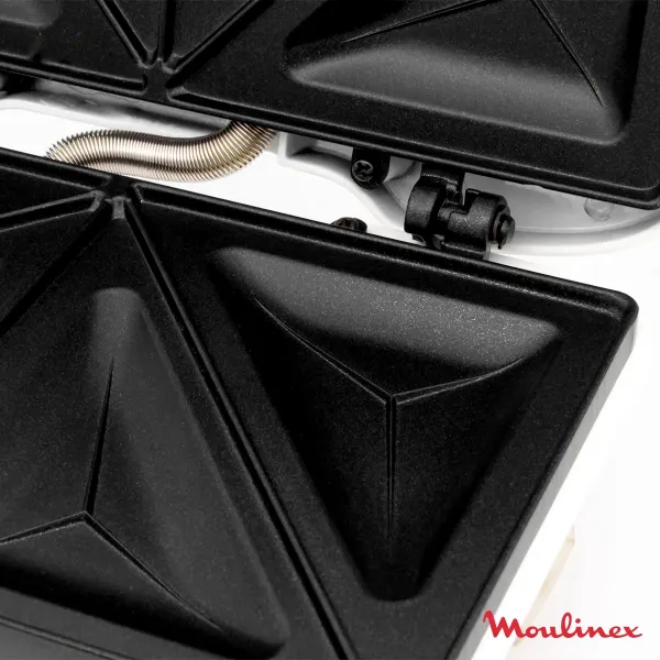 این دستگاه دارای دو صفحه مربعی است که قابلیت تهیه چهار تکه ساندویچ مثلثی را بهطور همزمان فراهم میکند.