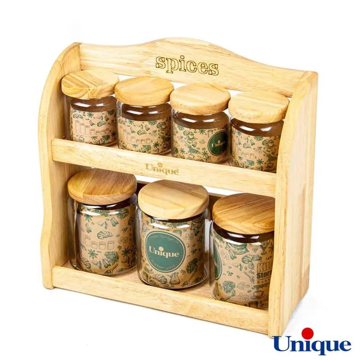 جنس چوب: رابروود جنس پایه: چوب جنس بدنه ظروف: شیشه