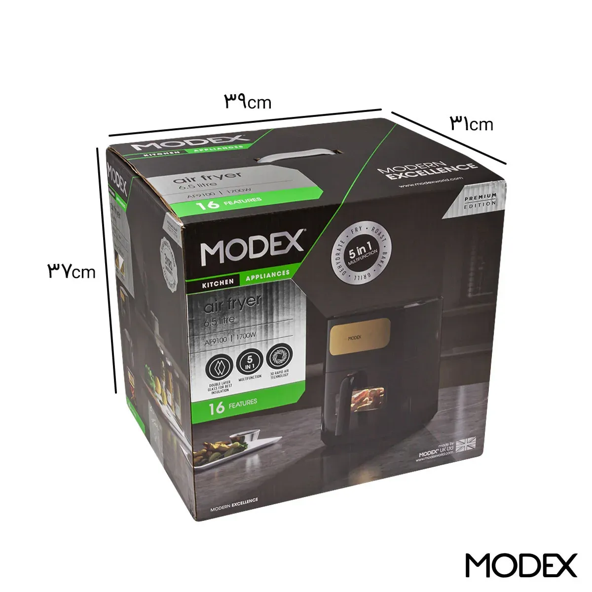 سرخکن بدون روغن مودکس AF9100 با طراحی مدرن و دقیق ساخته شده است تا هم ظاهر جذاب و شیک داشته باشد و هم عملکرد حرفهای ارائه دهد.