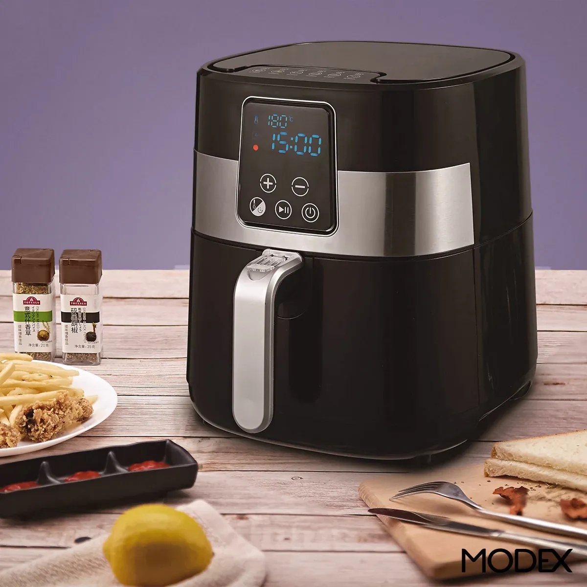 مهمترین ویژگی سرخ کن مودکس طراحی جمعوجور و خوشفرمشه که هم جای زیادی روی کابینت نمیگیره و هم به آشپزخونه ظاهر مدرن میده. ظرفیت ۳.۵ لیترش برای خانوادههای کمجمعیت یا درست کردن یه وعده سالم و سریع عالیه. از اون طرف، فناوری گردش هوای سریع باعث میشه غذا بدون روغن اضافی، همونقدر برشته و خوشمزه بشه. وجود صفحه کنترل لمسی با نمایشگر LED هم همهچیز رو خیلی ساده کرده؛ فقط کافیه دما و زمان رو انتخاب کنی تا دستگاه باقی کار رو خودش انجام بده.