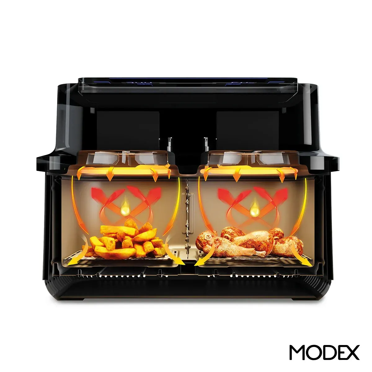 سرخ کن مودکس AF950 مجهز به فناوری Rapid Air است. این تکنولوژی با گردش سریع هوای داغ درون دستگاه، غذاها را به صورت یکنواخت میپزد. استفاده از این فناوری باعث میشود نیاز به روغن در فرآیند پخت به حداقل برسد و در عین حال بافت غذا ترد و خوشمزه باقی بماند.