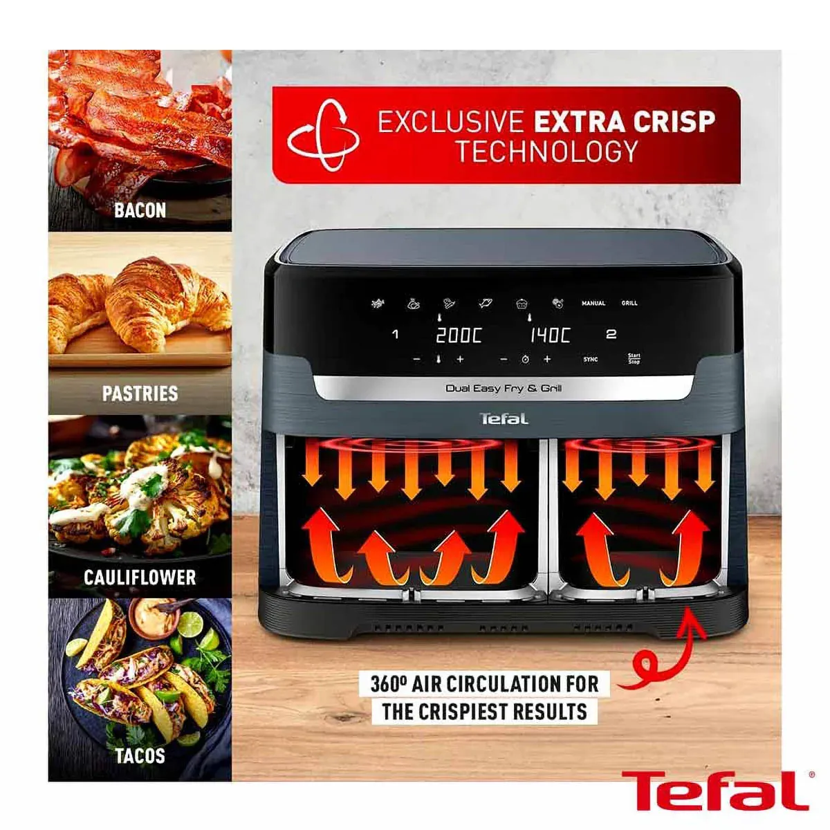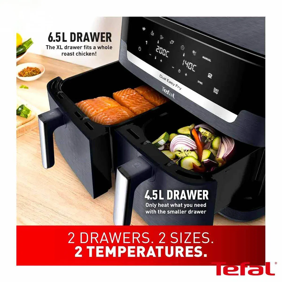 با استفاده از این محصول شما میتوانید در یک وعده شام، مرغ بریان کامل را در یک کشو بپزید و در کشوی دیگر سیبزمینی یا سبزیجات را سرخ کنید، آن هم بهصورت همزمان و بدون اینکه طعم یا بوی غذاها با هم ترکیب شوند.