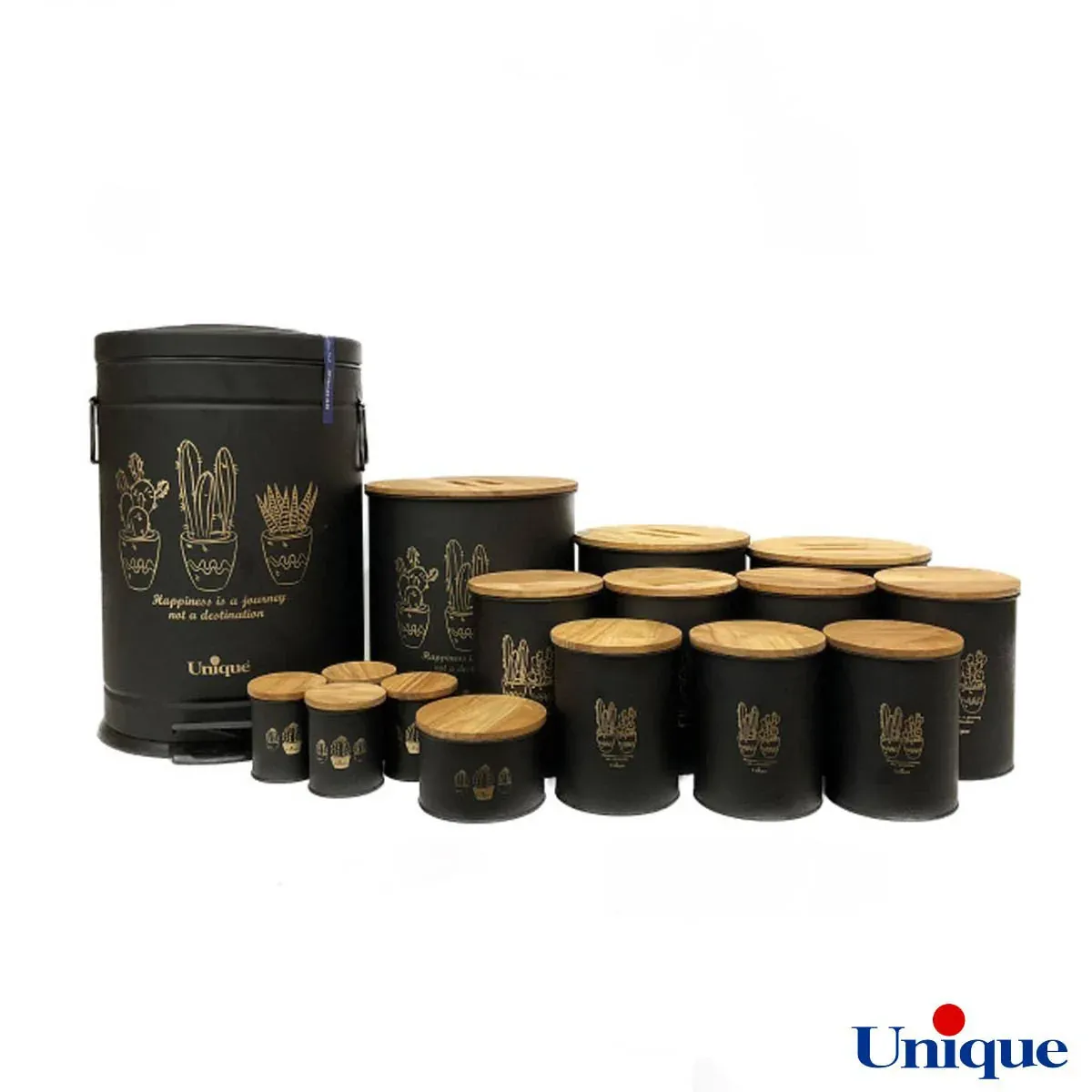 سرویس آشپزخانه 16 پارچه یونیک فانتزی الیزابت کاکتوس درب بامبو مشکی UN-9022