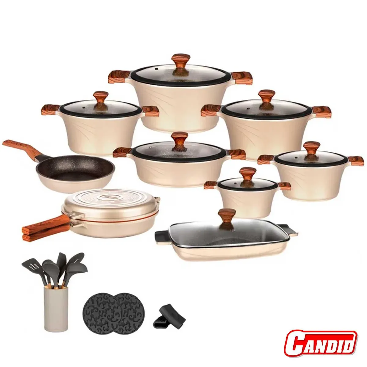 سرویس قابلمه تیتانیوم کاندید 28 پارچه مدل سزار رنگ بژ