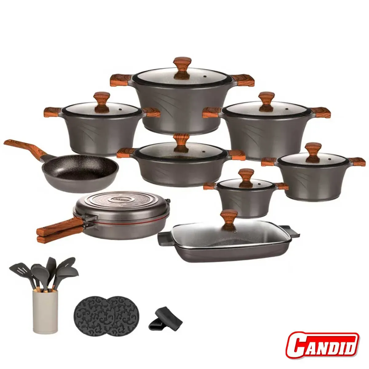 سرویس قابلمه تیتانیوم کاندید28 پارچه مدل سزار رنگ پلاتینیومی