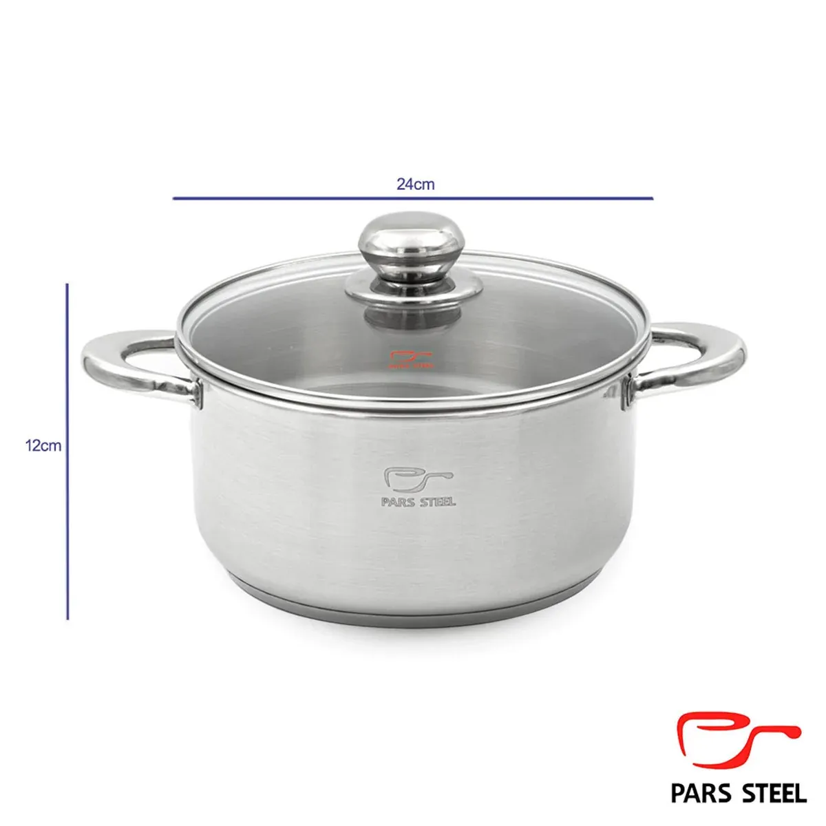 سرویس قابلمه پارس استیل 9 پارچه کف سه لایه دسته فلزی