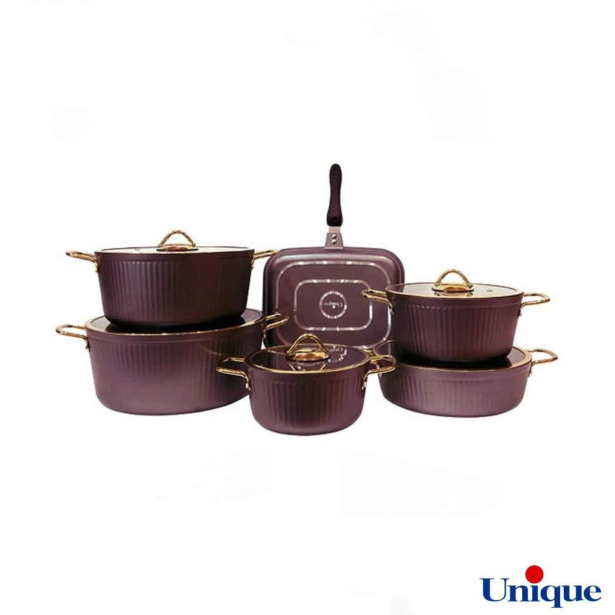 قابلمه یونیک UN-8418 به رنگ بادمجانی و درب آن از جنس پیرکس با لبه استیل و به رنگ طلایی است، بر روی درب سوپاپ تخلیه بخار نیز قرار دارد. جنس بدنه از دایکاست آلومینیوم (چدن) و داخل این قابلمه ها با روکشی از جنس گرانیت پوشیده شده است که علاوه مقاومت بالاتر، از سلامت بیشتری نیز برخوردار است. در صورتی که از قاشق های چوبی یا پلاستیکی برای هم زدن غذا استفاده شود و از کشیدن سیم های ضخیم و زبر هنگام شستشو جلوگیری شود، عمر و دوام قابلمه بسیار طولانی تر خواهد بود. رنگ بادمجانی بدنه این قابلمه بسیار زیبا و چشمگیر است و با لبه و دستگیره های طلایی ترکیب بسیار زیبایی را ایجاد کرده است. سرویس قابلمه 8418 پنج قابلمه و تابه به همراه درب آن است که مجموعا یک سرویس 12 پارچه را تشکیل می دهد. این سرویس با دست یا با استفاده از ماشین ظرفشویی قابل شستشو است.