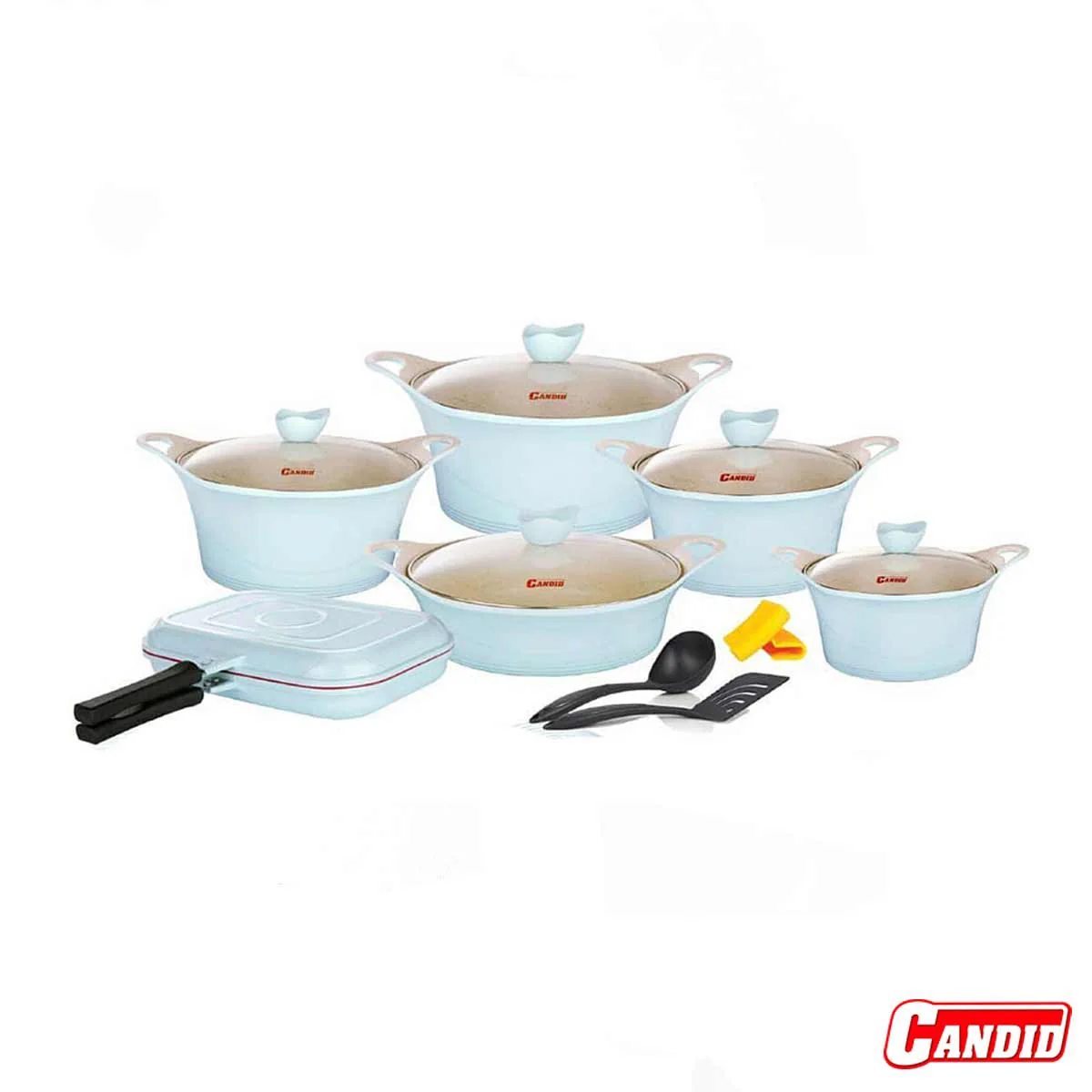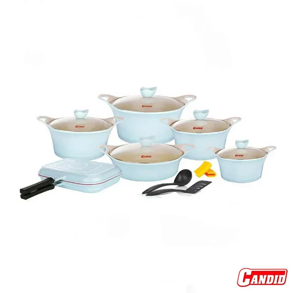 سرویس قابلمه 15 پارچه گرانیتی کاندید مدل کاپری آبی آسمانی
