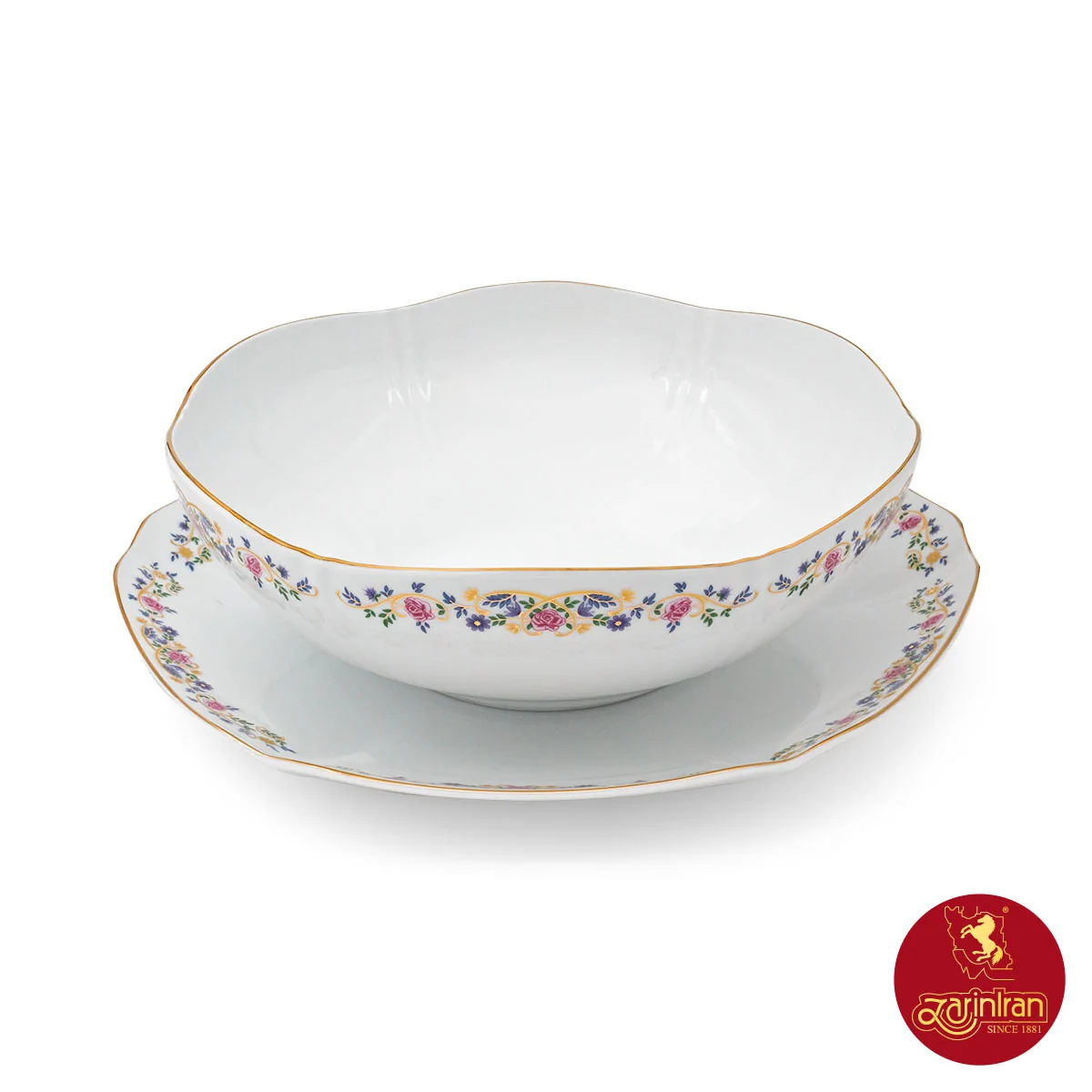 چینی زرین سرویس قاب و قدح هگزان طرح گل گلستان