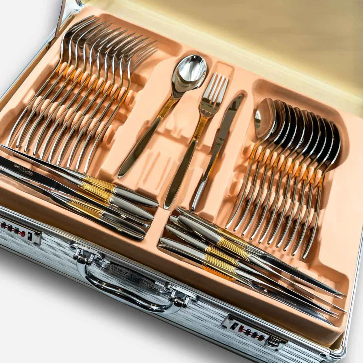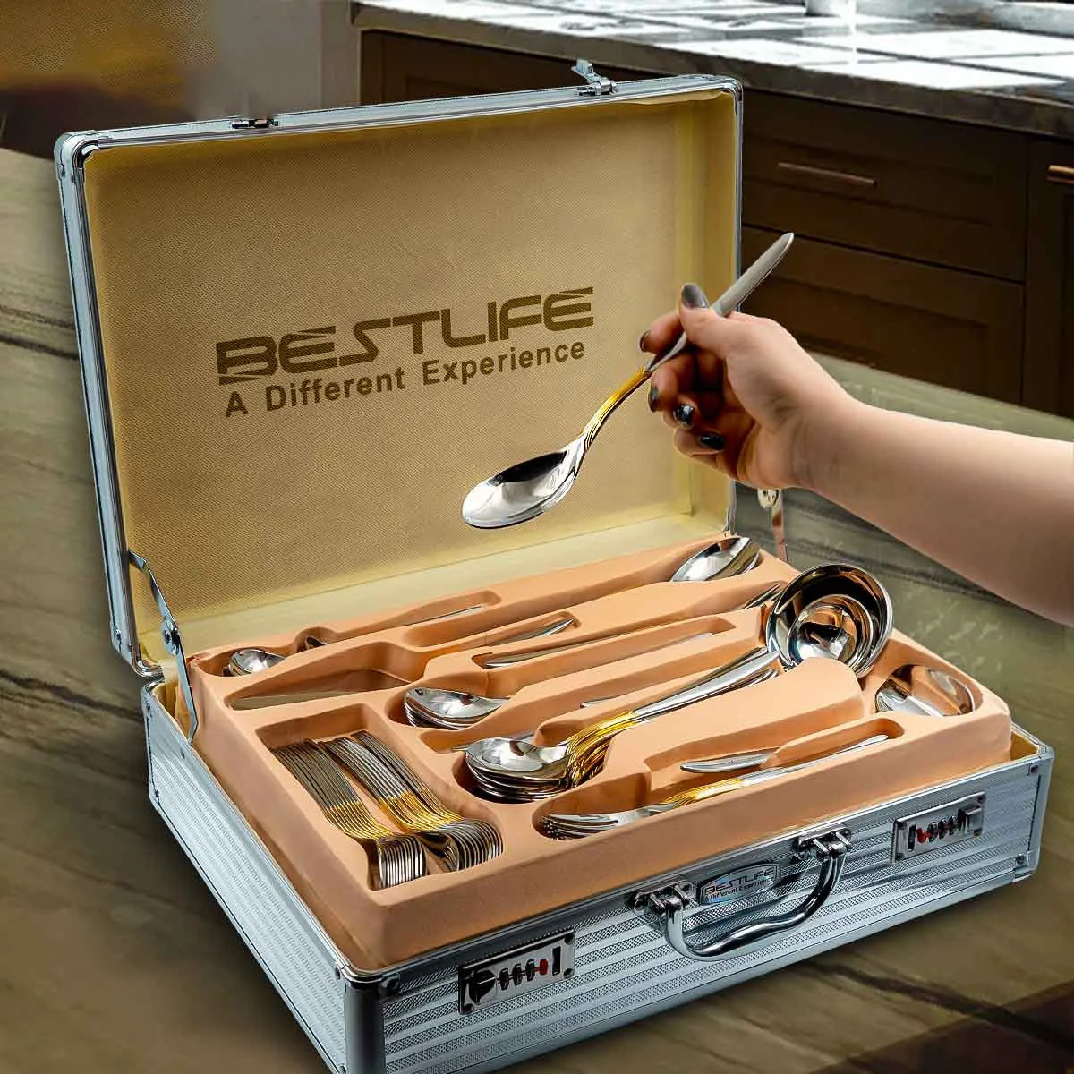 سرویس قاشق چنگال 219MG بست لایف دور طلایی 143 پارچه