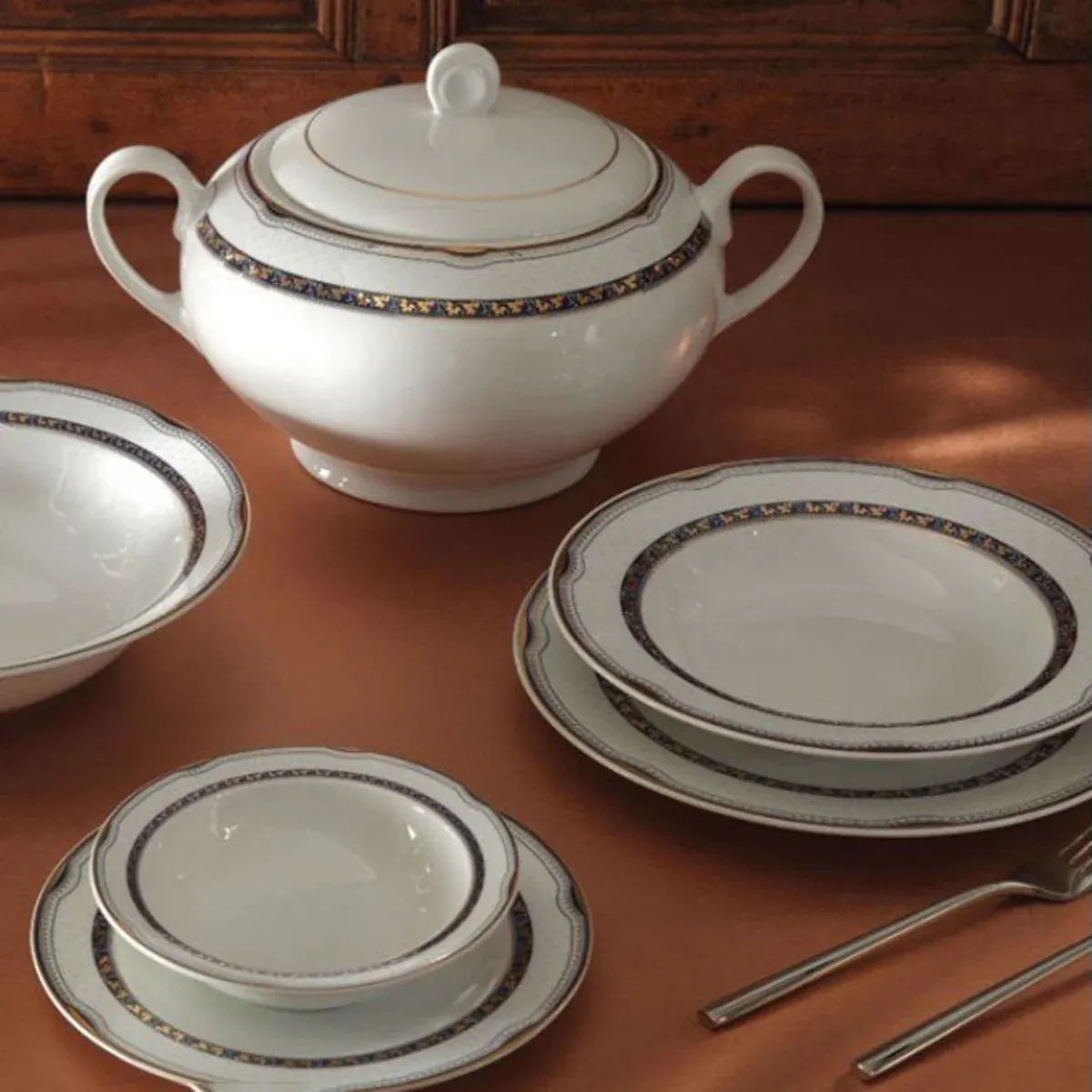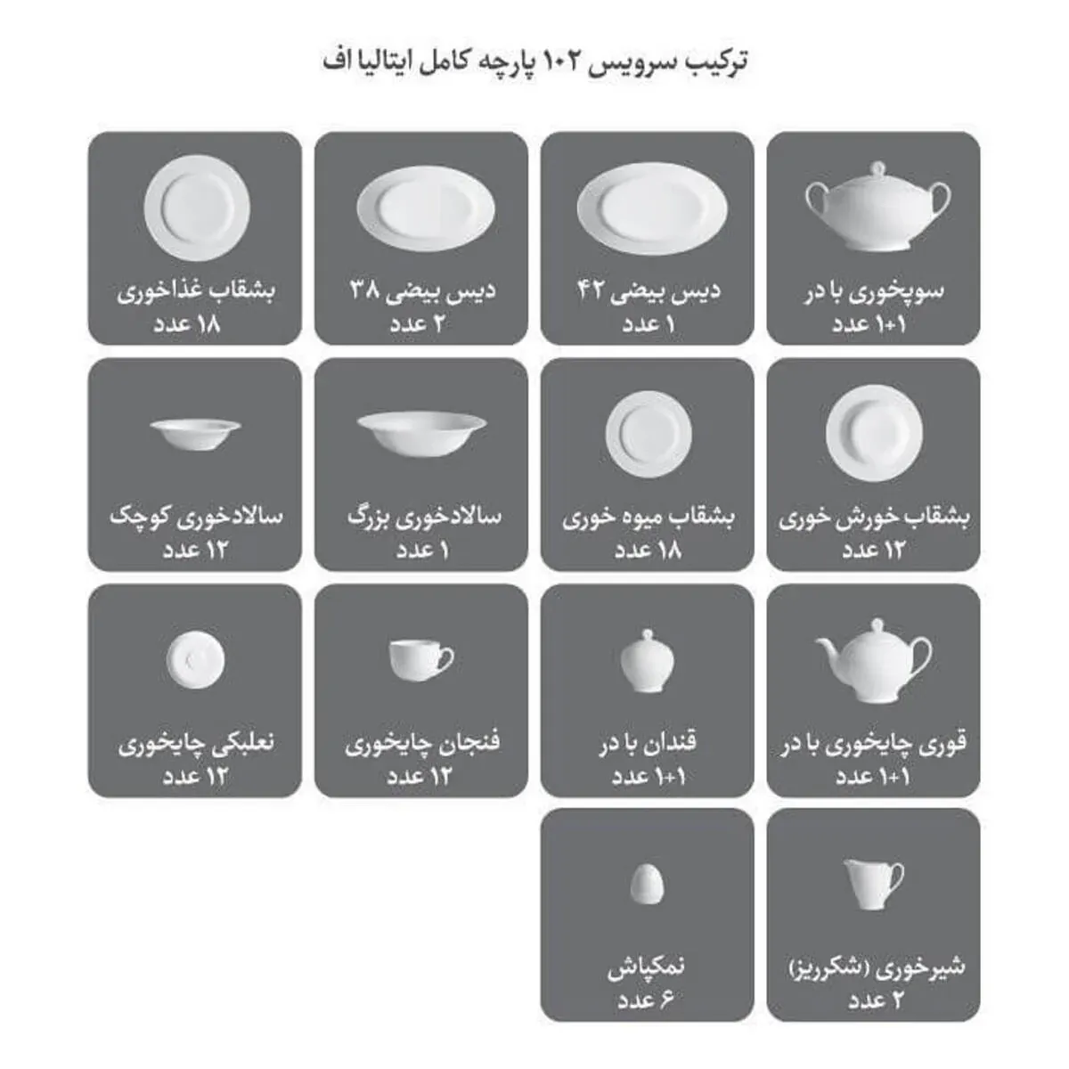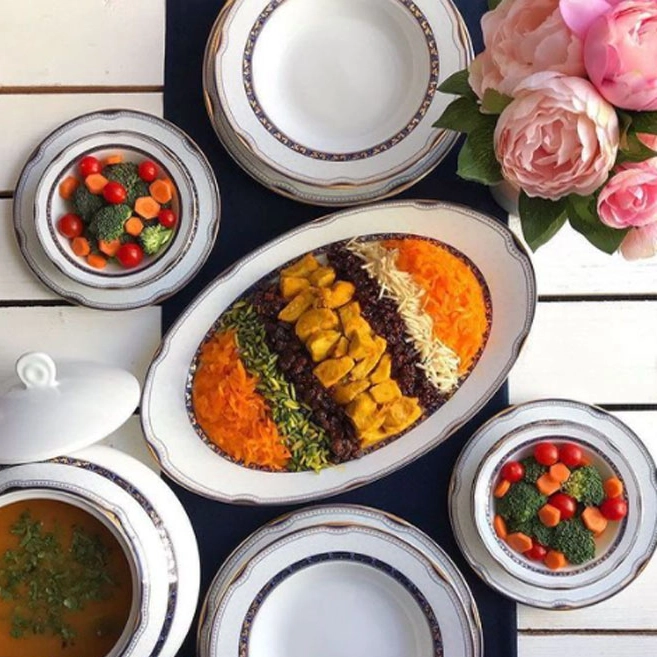 سرویس پرشیا سرمه ای چینی زرین ایتالیا اف 12 نفره 102 پارچه