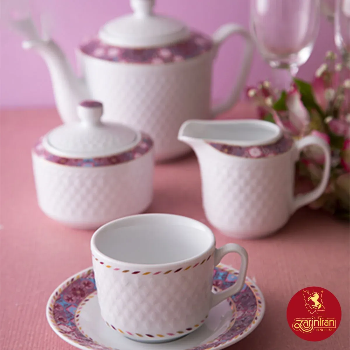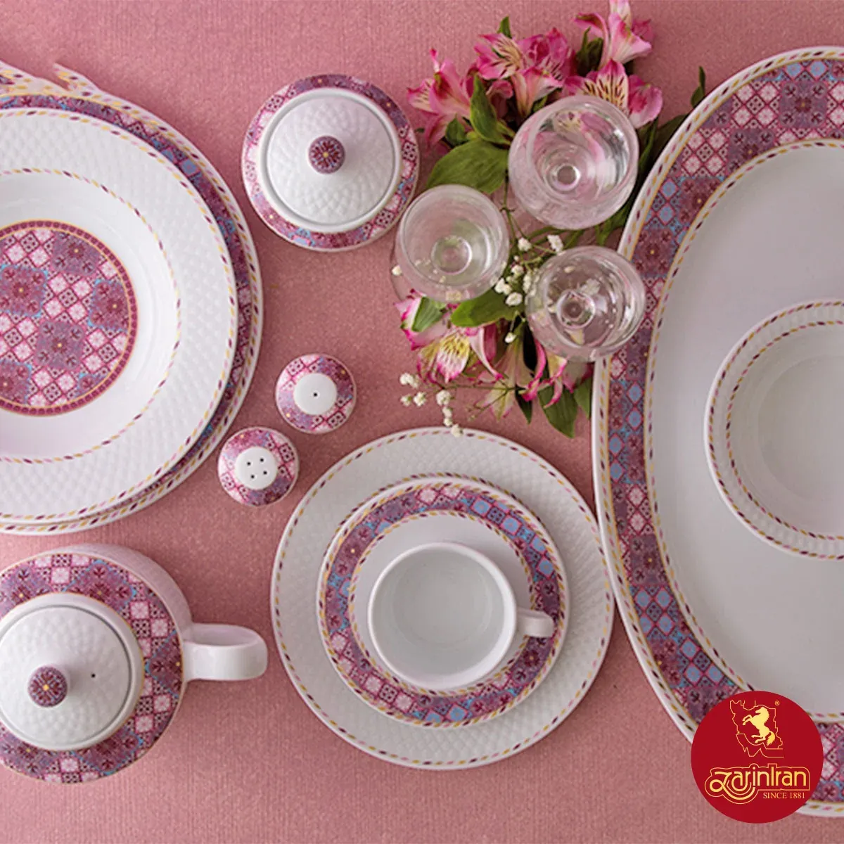 ترکیب سرویس 12 نفره رادیانس: شامل 102 پارچه سوپ خوری با در:یک عدد (2 پارچه) سالاد خوری بزرگ:یک عدد سالاد خوری کوچک: دوازده عدد دیس:سه عدد با قطر (42 × 1) + (38 × 2) سانتیمتر بشقاب غذا خوری: هجده عدد بشقاب خورش خوری: دوازده عدد بشقاب میوه خوری: هجده عدد قوری چای خوری با در: یک عدد (2پارچه) فنجان: دوازده عدد نعلبکی: دوازده عدد قندان با در :یک عدد (2 پارچه) شکر ریز:دو عدد