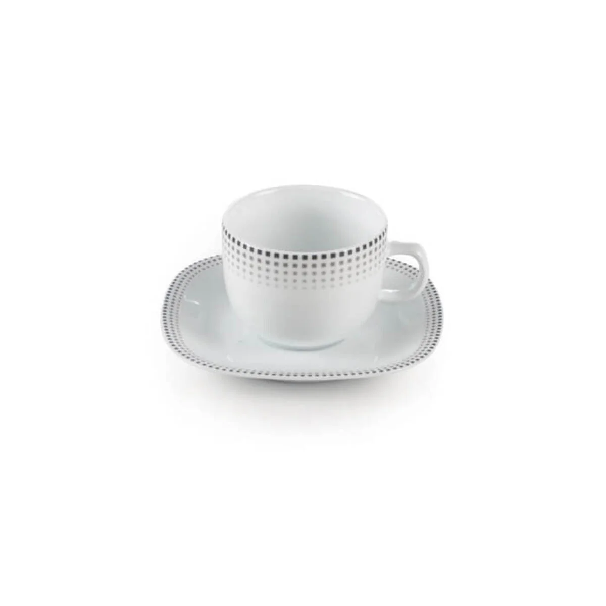 معمولا برای دکوراسیونهای مدرن از تلفیق رنگی سیاه و سفید به وفور استفاده میشود. طرح مون بلان برای این مدل از سرویس چای خوری چینی زرین، شامل پلکا یا نقطههای مربع شکل کوچکی است که با هایلایت پُررنگ و کم رنگ به طور منظم و ردیفی دیده میشوند.
