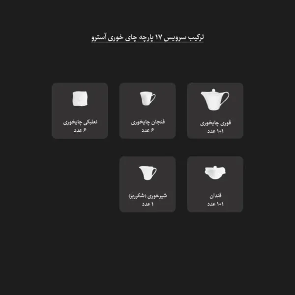 چینی زرین سرویس 17 پارچه چای خوری آسترو طرح زرین (توقف تولید)*