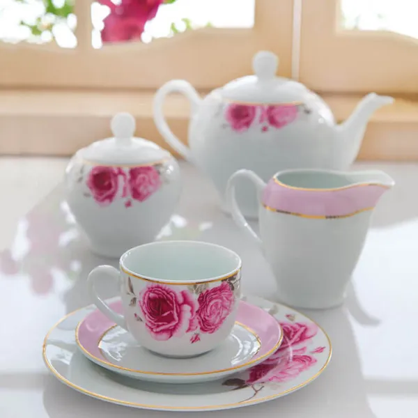 سرویس چای خوری رزفلاور چینی زرین ایتالیا اف 17 پارچه
