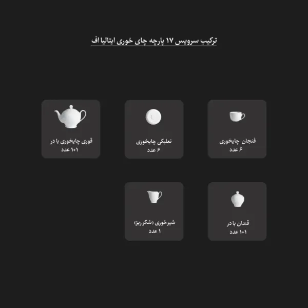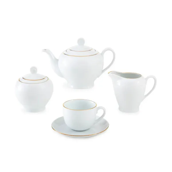 سرویس چای خوری زرین لب طلایی چینی زرین ایتالیا اف 17 پارچه
