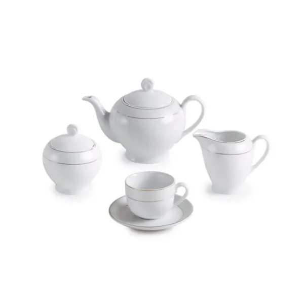 سرویس چای خوری چینی زرین ایتالیا اف طرح سپید صدف 17 پارچه