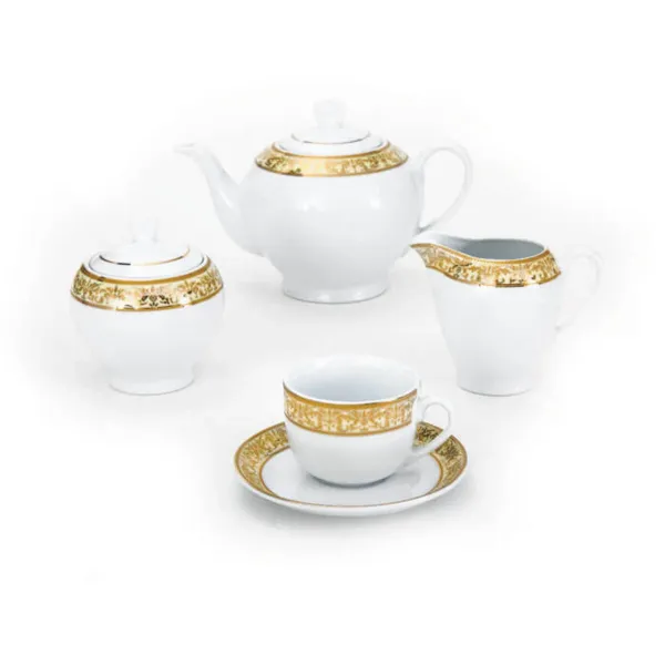 سرویس چای خوری چینی زرین ایتالیا اف طرح مهر کرم 17 پارچه (توقف تولید)*