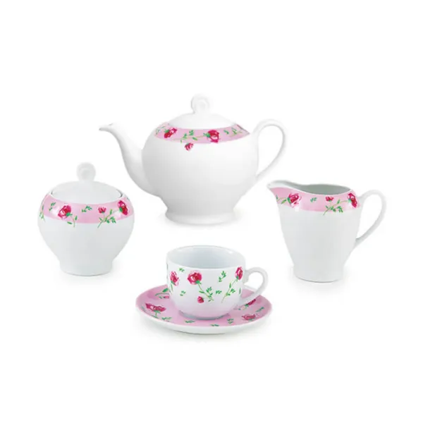 سرویس چای خوری پینک رز چینی زرین ایتالیا اف 17 پارچه